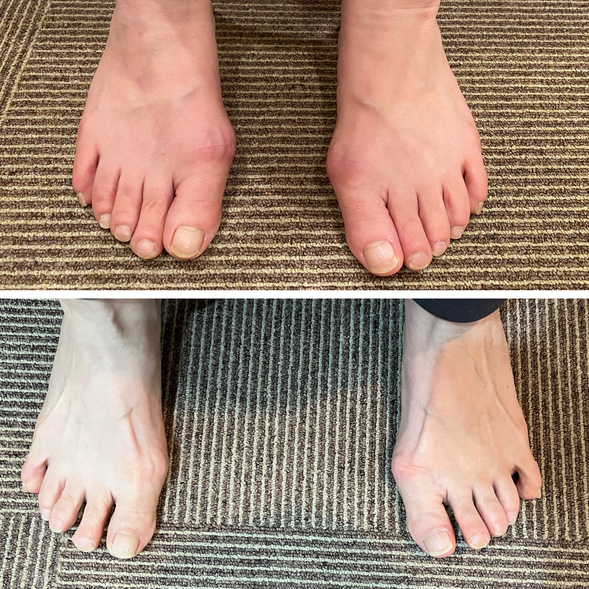 施術前(上)→ 施術後(下):足指の広がりと親指の向きに変化が見られます