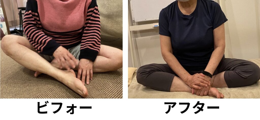 ・初日の所見:両膝蓋骨がほぼ動かない・あぐらで右足が浮く